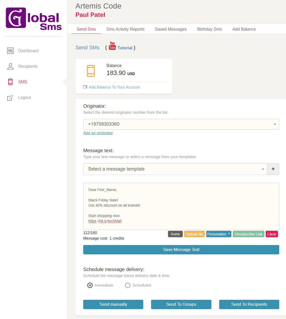 With Global Sms you can send a personalized Sms message to each recipient, event when sending a message to thousands of recipients at the same time.